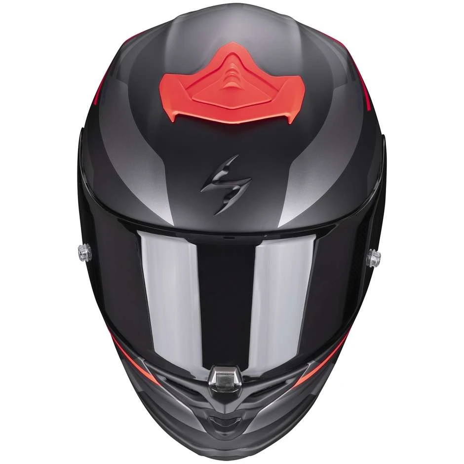 Die oberen Lufteinlässe befördern eine größere Luftmenge in den Helm, während die aerodynamischen Absauggeräte dank ihres niedrigen und breiten Profils, das passt, die effiziente und vor allem leise Abgabe heißer Luft auch bei hohen Geschwindigkeiten gewährleisten optimal im eleganten und schlanken Design der Schale.